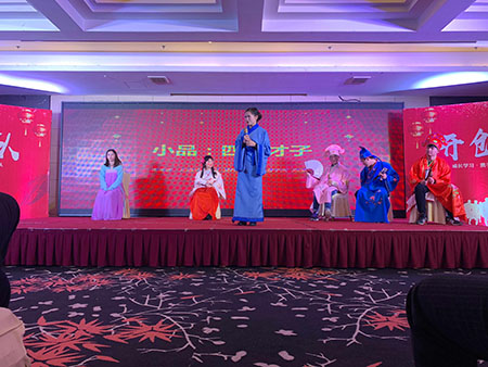 最后一個(gè)表演節(jié)目是小品“四大才子”,這個(gè)節(jié)目把在場的每一個(gè)人都逗的笑不攏嘴,也把現(xiàn)場的氛圍拉向了高潮,就這樣一年一度的年會就這樣結(jié)束了。